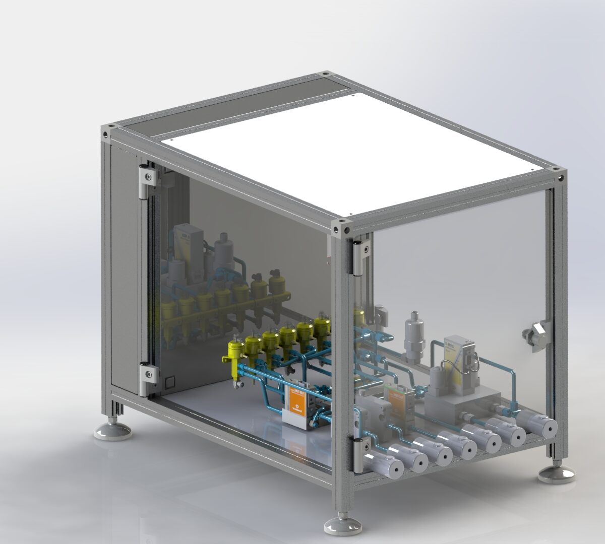 Van concept tot detailontwerp: mechanisch, elektrisch en softwarematig, volledig uitgewerkt in SolidWorks, Eplan en PLC-systemen.